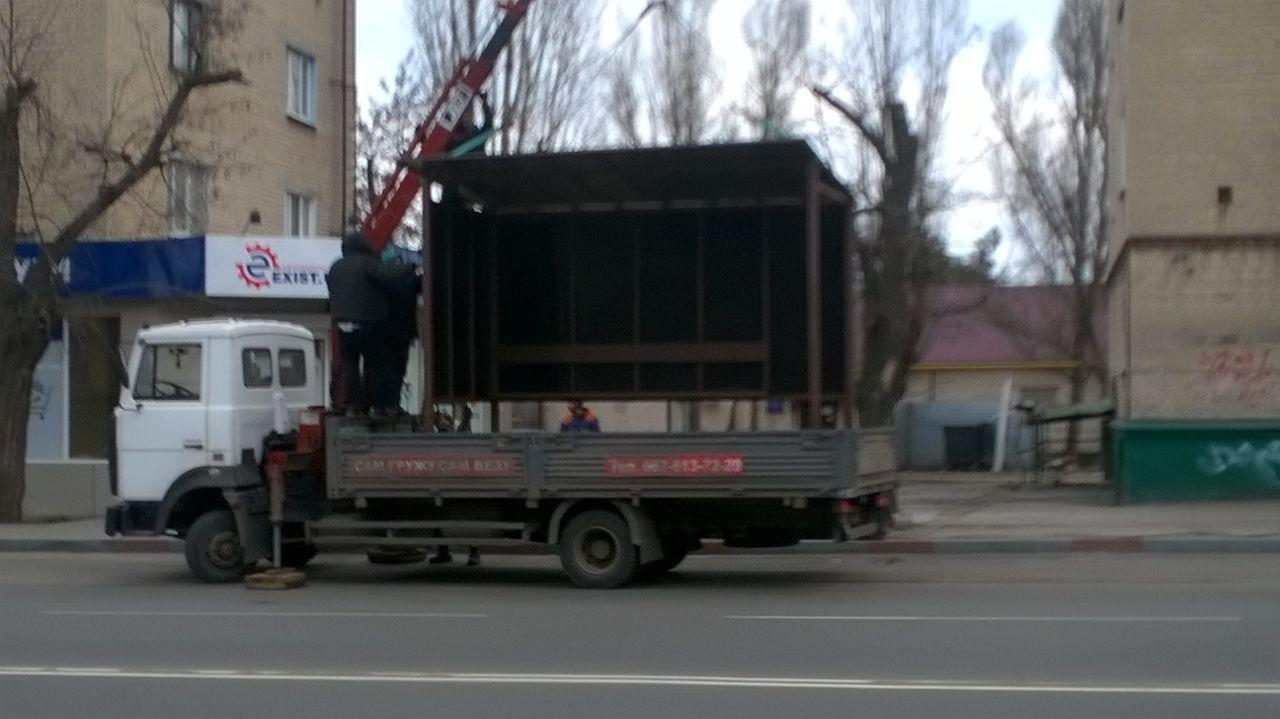 Прямо сейчас на пр. Б. Хмельницкого устанавливают новую остановку взамен той, что была сбита в ДТП.