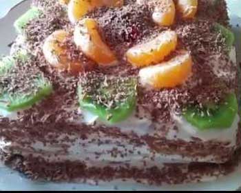 Получается десерт невероятно нежным: печенье после пропитки больше похоже на бисквитные коржи - мягкие и сочные. Фрукты делают торт очень ароматным и безумно вкусным. Сметанный крем готовится буквально за пару минут: миксер вам в помощь.