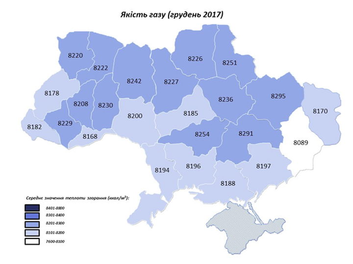 В ПАО «Укртрансгаз» проанализировали физико-химические показатели природного газа, который поставлялся в дома украинцев в декабре 2017 г. Выяснилось, что качество газа во всех областях Украины соответствовало установленным нормам.