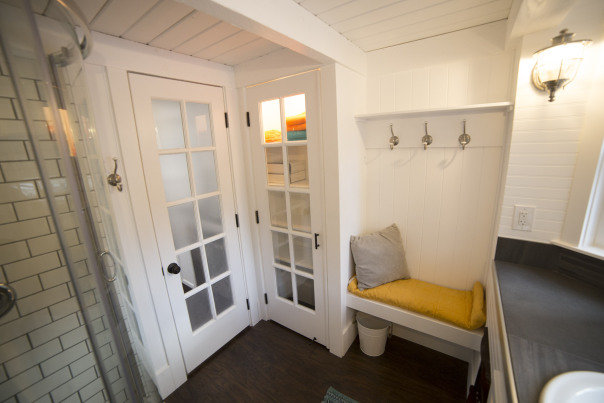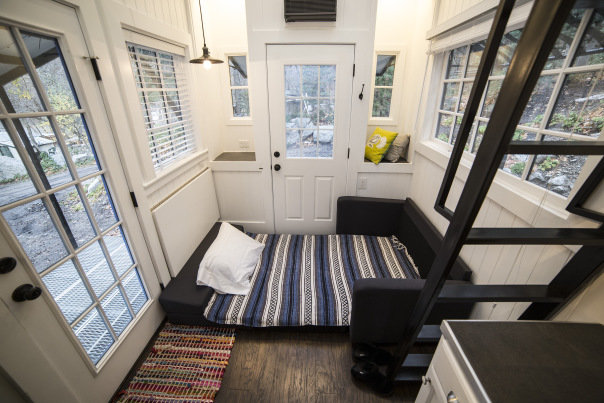 Дом рассчитан на четырех жителей. Там есть ванная комната, спальня и кухня с мини-холодильником, плитой, духовкой и микроволновой печью. Хозяйка выбрала интерьер в светлых тонах, добавив несколько ярких деталей.