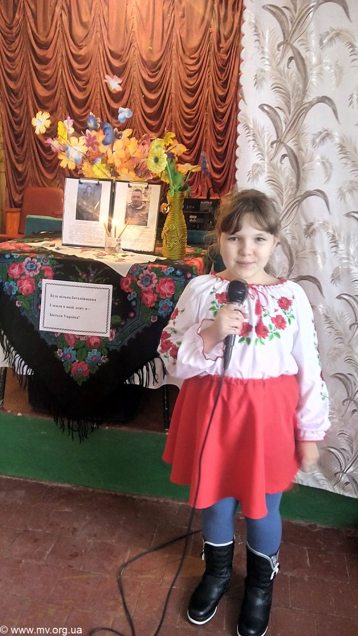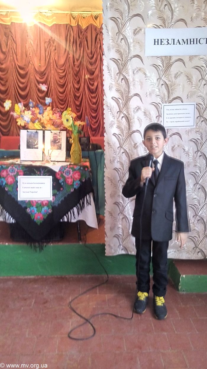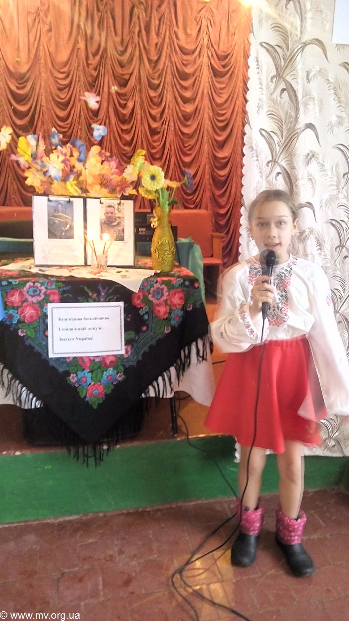 «Вечер прошел на большом эмоциональном подъеме, ведь для нас война на Востоке Украины стала тяжелым испытанием, в боях с российскими агрессорами погибли два наших земляка – Саша Минченко и Андрей Приказчиков. Дети, которые были главными зрителями и участниками вечера, который мы назвали «Хоробрість та незламність», читали стихи и на примере своих земляков учились патриотизму. На вечере выступили наши дети – Кирилл Джуровец, Дарья Седина, Анна Мотузкова, Рубен Петросянс, Владислав Ким, Настя Сидорова и Владислава Колинчук. Также выступили с песнями наша семейный врач Людмила Леонова и сторож амбулатории Тамара Джуровец. Все желали победы нашим воинам на Востоке, здоровья и скорейшего возращения домой!», – рассказала Людмила Николайчук.