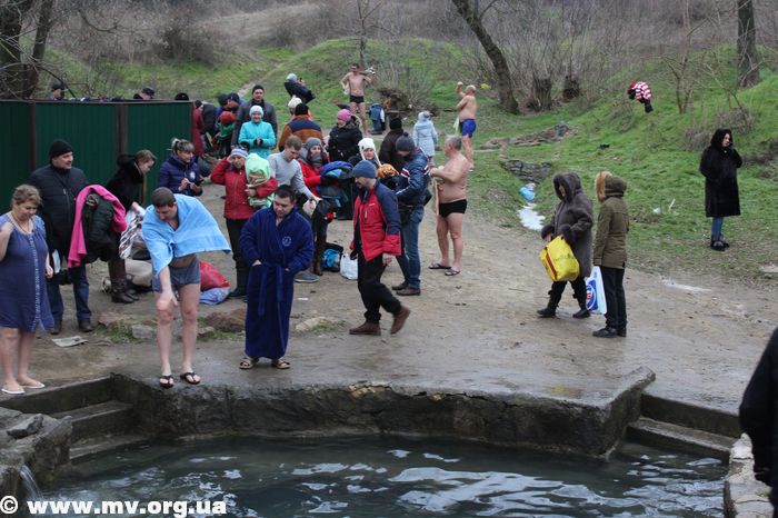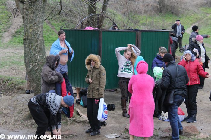 «Папа, дай, скорее, свитер!», – синими и дрожащими губами просит мальчик-подросток своего зазевавшегося отца. К счастью, рядом всегда есть мама, которая, хоть и сама после купели еще не оделась, но ради сына бросает все и натягивает ему такой желанный теплый свитер. А через пару минут другой детский голос от мальчика лет восьми раздается из купели – папа вместе с ним полез в воду и нырнул с головой, но мальчик на такое оказался не способен, о чем и провозгласил долгим и резким, как сирена, криком.