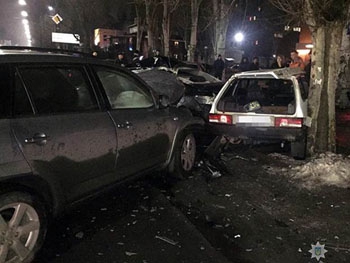 19 января около 21:40 на проспекте 50-летия Победы в Мелитополе столкнулись два транспортных средства - «Toyota RAV4» и «Toyota Camry». После столкновения автомобили отбросило на припаркованные неподалеку «ВАЗ-2108», «Daewoo Espero» и «Opel», которые получили механические повреждения.