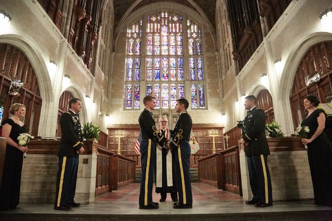 Первая гей-пара военных заключила брак в элитной Военной академии США в Вест-Пойнте. Об этом сообщает New York Times.
