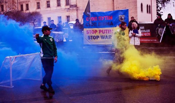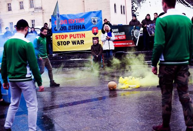 В центре Львова неравнодушные патриоты вышли на акцию "Stop Putin - stop war" против проведения Чемпионата мира по футболу в России.