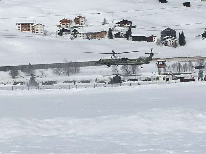 По данным журналиста Валерия Калныша, во время приземления самолета Трампа в аэропорту Цюриха, его закрыли на полчаса и не разрешали самолетам садиться и взлетать. Кроме этого уже непосредственно в Давос президент США отправился на вертолете в сопровождении еще шести вертолетов.