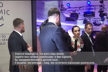 Также он отметил, что ответит на вопрос, если он прозвучит на украинском. На что провокаторша отметила, что президент Украины "прекрасно понимает русский язык".