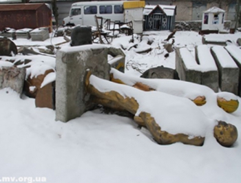 И вот - свершилось! Теперь можем с ответственностью заявить, памятники на месте – на складе КП. Хранят их, как положено хранить трупы (в данном случае политические), в холоде – под снегом.