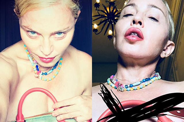 Мадонна хорошо знает, что такое эпатаж, а участие в провокационных фотосессиях для нее является делом привычным. Вчера 59-летняя звезда поделилась довольно откровенным снимком в своей соцсети. Певица, крепко прижимая сумку к груди, снялась топлес.