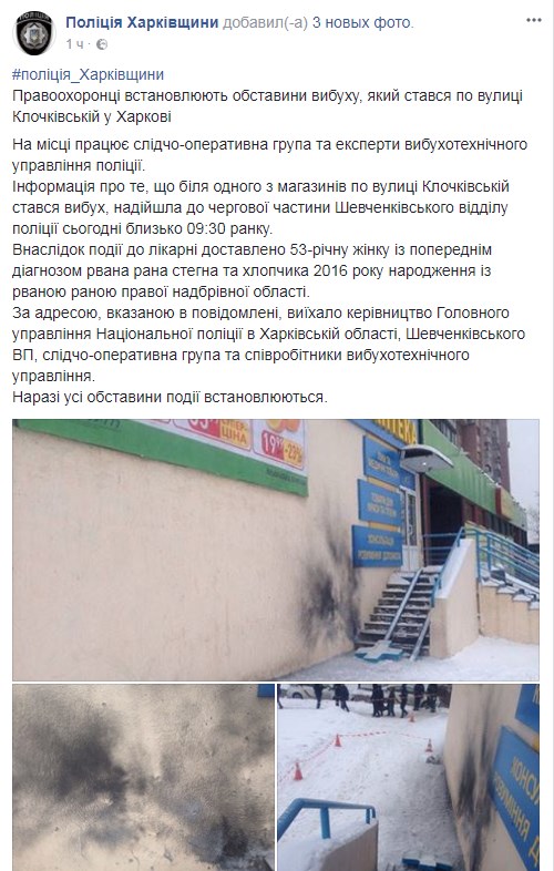 Сегодня, 29 января, около половины десятого утра в Шевченковском районе Харькова у одного из местных супермаркетов прогремел взрыв, в результате пострадали два человека.