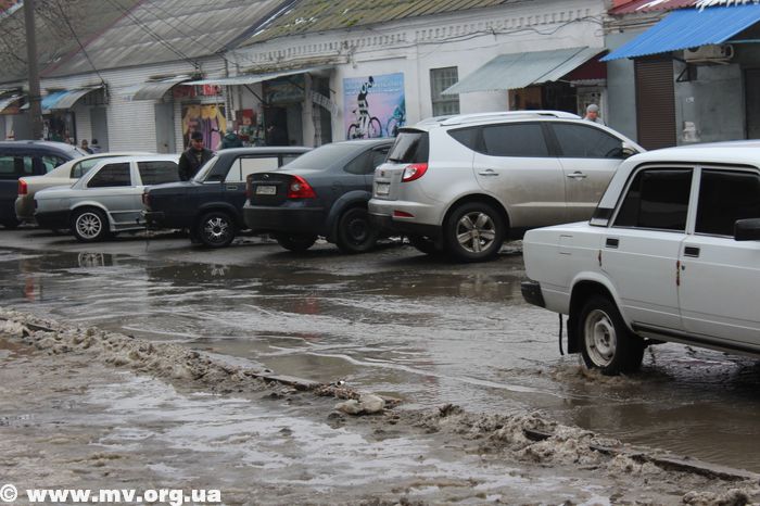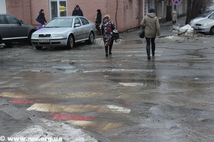 А в нижней части города не все так радужно, ибо сверху сюда собираются потоки талой воды. Традиционная лужа уже образовалась, например, на перекрестке ул. М. Грушевского и ул. Интеркультурной - там, где летом капитально ремонтировали асфальт. Да любой проход и проезд в этой части города утонул в воде - и не всякую лужу можно обойти.