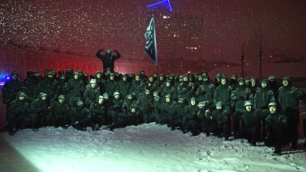 Более 600 человек в одинаковых куртках, некоторые в балаклавах, прошлись по центру столицы к Киевской крепости, где собственно и состоялась присяга.