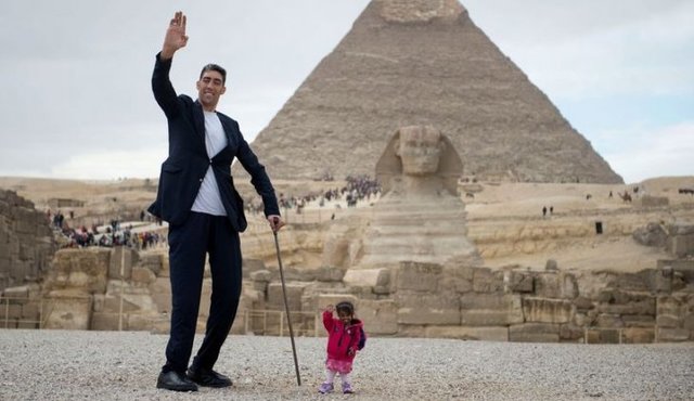 В Египте встретились самый высокий мужчина планеты Султан Кесен, рост которого составляет 251 сантиметр, и самая маленькая женщина Йоти Амге, рост которой всего 62 сантиметра.