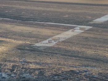ФОТО. На дорогах лежит застывший лед вода и грязь. Как можно судить о качестве разметки, если на фото застывшая слякоть? Может снизу все есть, а визуально разметка прикрыта грязью?