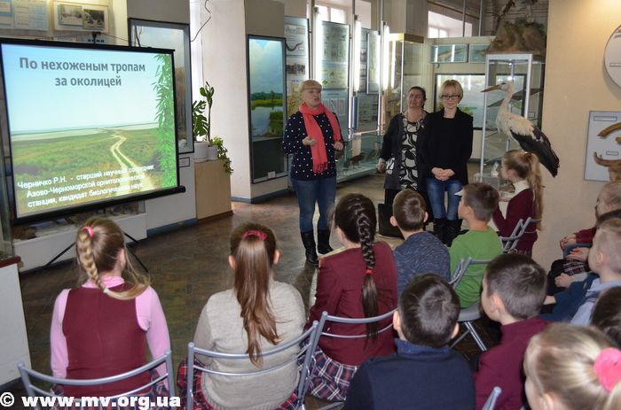 На эковстречу в музей пришли ученики 3 "В" класса начальной школы №3 Мелитополя. Они с огромным интересом слушали старшего научного сотрудника Азово-Черноморской орнитологической станции, кандидата биологических наук Раису Черничко, которая провела для малышей увлекательную презентацию водно-болотных угодий, которые есть в Запорожской области. Оказывается, на территории нашего края есть три водно-болотных угодия международного значения - река Берда, Бердянская коса и Молочный лиман.