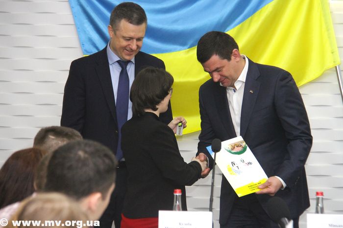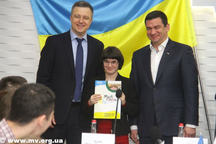 На церемонии вручения ключей присутствуют губернатор области Константин Брыль, глава облсовета Григорий Самардак, уполномоченный Президента Украины по правам ребенка Николай Кулеба, городской голова Мелитополя Сергей Минько.