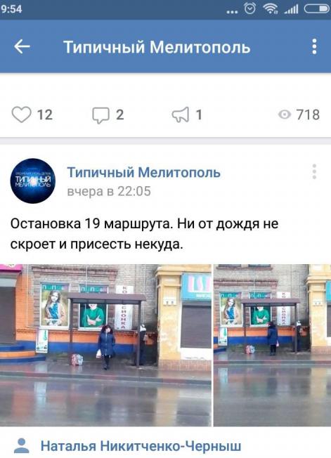 «Остановка 19 маршрута. Ни от дождя не скроет и присесть некуда» написал автор поста.