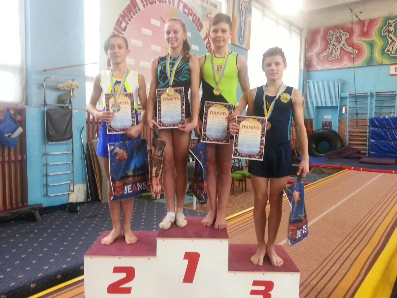 По результатам выступлений наших акробатов они заняли такие места: победу одержал Назар Симан, выступавший по программе второго юношеского разряда; в младшей возрастной группе по программе первого спортивного разряда Савелий Писклов стал первым, а Юрий Павлюков - третьим; среди девочек Элина Тавальбех заняла первое место. В средней возрастной группе по программе первого спортивного разряда среди мальчиков весь пьедестал - мелитопольский: Дмитрий Комлев занял первое место, Никита Фурлет стал вторым, а Даниил Тимонин - третьим. Среди девочек второе место завоевала Руслана Кацал. В старшей возрастной группе, выступавшей по программе первого спортивного разряда среди мальчиков первое место у Влада Мещанинова, второе - у Кирилла Станчева, а среди девочек Влада Романенко заняла второе место. По программе кандидатов в мастера спорта среди мальчиков отличились Егор Еременко (первое место, а среди девочек - Андриана Бирюкова (первое место) и Дарья Коломоец (второе место). Выступавшие по программе мастеров спорта среди девочек победила Лада Гнутов, а среди юношей первое место у Андрея Коломоец, на третьем - Ярослав Щапов.