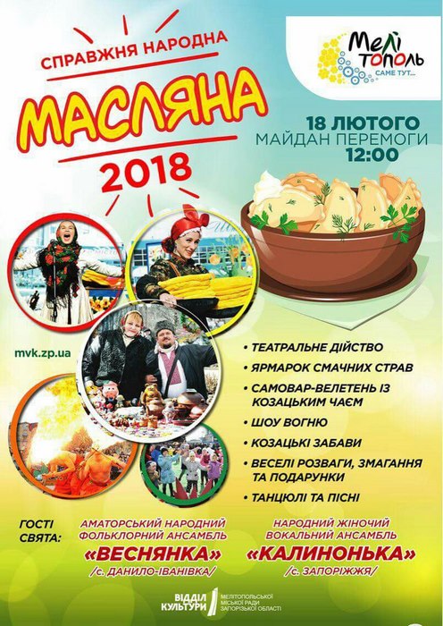 Мелитопольцев приглашают завершить празднование Масленицы вместе. Всех ожидают на площади Победы 18 февраля с 12.00.