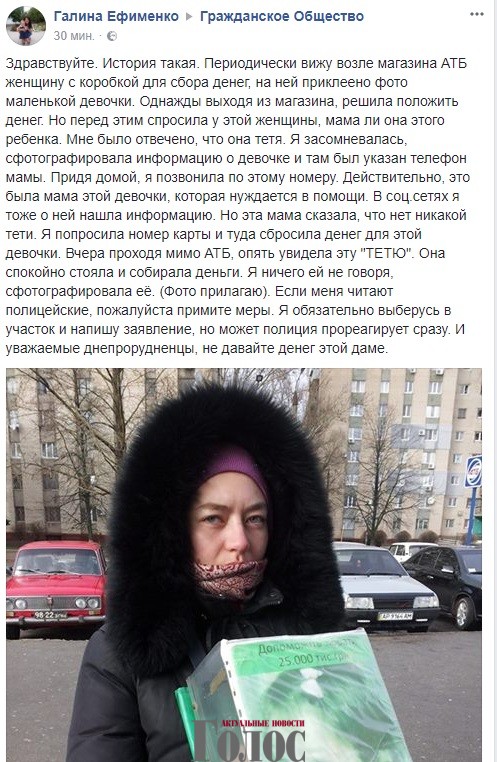 Так, горожанка сообщает, что увидела под продуктовым магазином женщину, которая собирала деньги на лечение больной девочки, она представилась ее тетей. Неравнодушная женщина пришла домой и проверила в сети информацию про ребенка, нашла контакты мамы и связалась. Девочка действительно больна и нуждается в помощи, а никакой тети нет, по словам мамы.