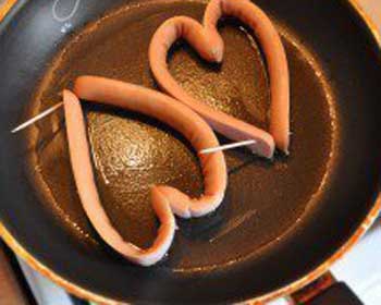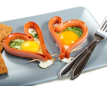 Завтрак из банальных сосисок и яиц, поданный таким образом, может быть отличным напоминанием любимому о том, какой сегодня праздник.