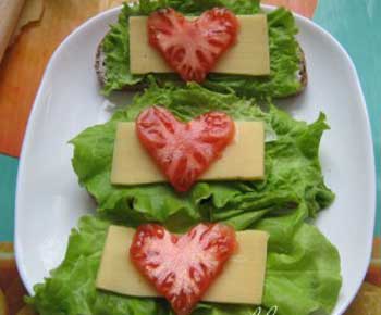 Тут вообще огромный полет фантазии! С помощью формочки для печенья в виде сердечка можно приготовить «сердечный» бутерброд из чего угодно: сыр, ветчина, помидоры-огурцы...