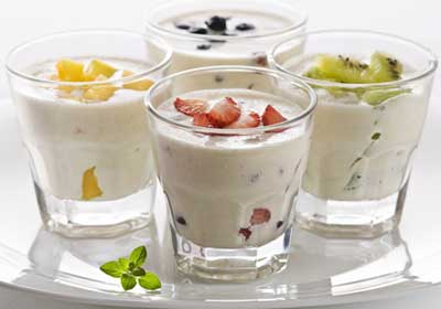 Продукты: 200 г очищенных креветок, 1 авокадо, 100 г консервированного ананаса, 4 ст. л. натурального йогурта, зелень для украшения.