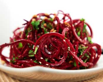 Способ приготовления: свеклу отварить, почистить, нарезать. Приготовить маринад: уксус прокипятить с сахаром, тмином, добавить соль. Горячим маринадом залить свеклу и дать настояться несколько часов. Подать, посыпав дроблеными грецкими орехами и зеленью.