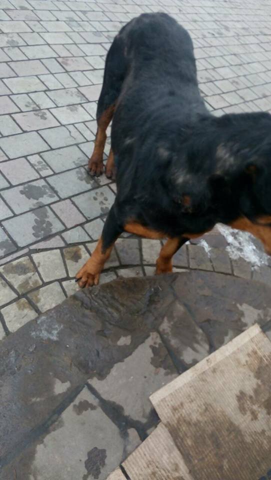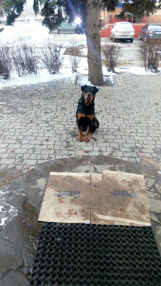 На странице в Фейсбук Мелитопольское общество защиты животных опубликовали пост о том, что в районе Нового Мелитополя потерялась собака породы ротвейлер. Пес никуда не уходит с места, сидит и уже четвертые сутки преданно ждет своего хозяина.
