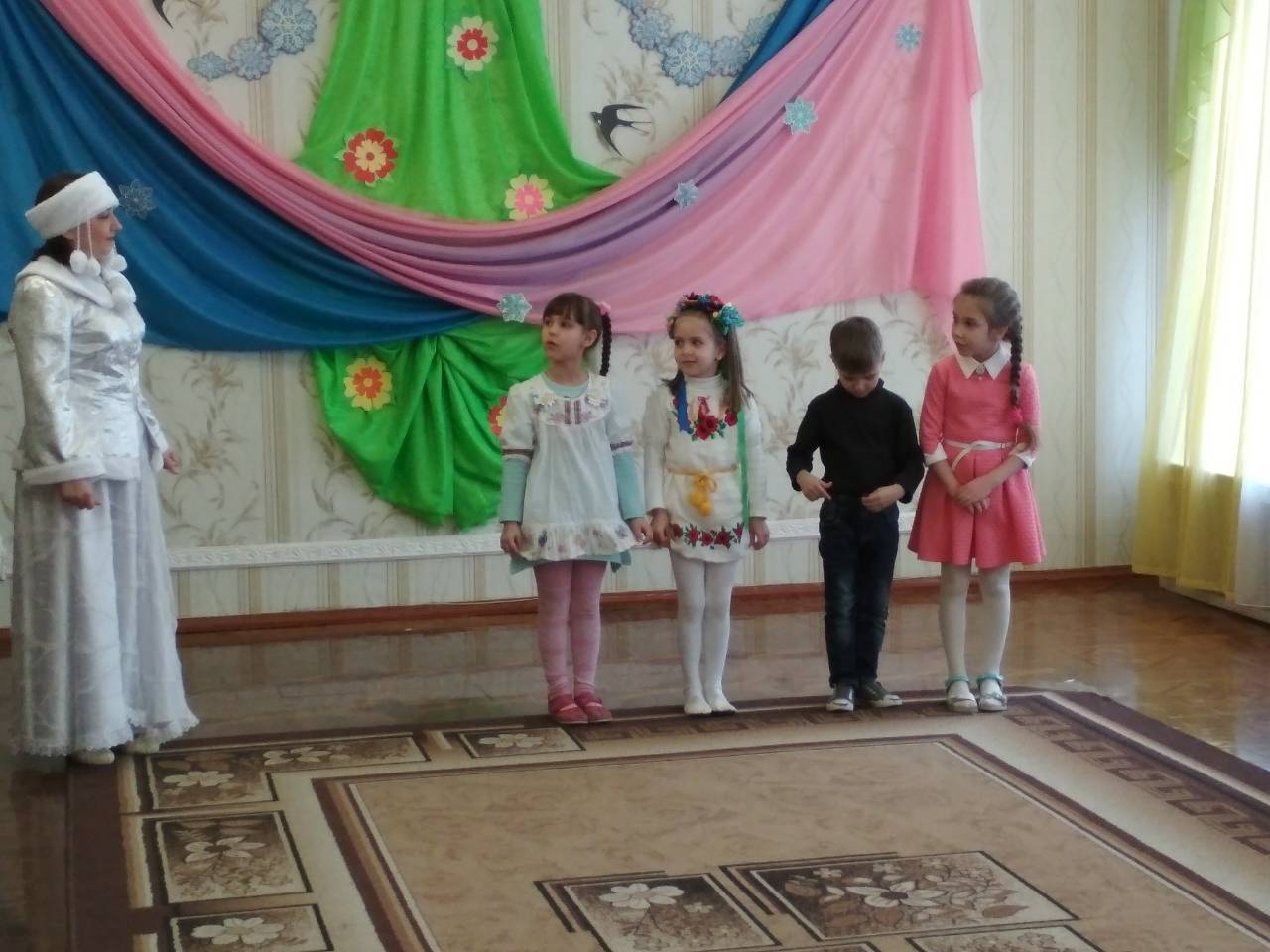 Старших деток собрали в музыкальном зале учебного заведения, чтобы подарить им немного праздничного настроения, а заодно и познакомить с традициями наших предков. И первой в гости к детишкам пришла Зима, нынешняя хозяйка. Детсадовцы зачитали гостье стихи и станцевали танец. Но особое оживление у ребят вызвало предложение Зимушки поиграть в снежки. Дети вскочили со своих местах и начали бросаться мягкими комьями ваты, которые заменили в игре настоящие снежки.