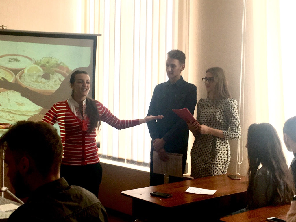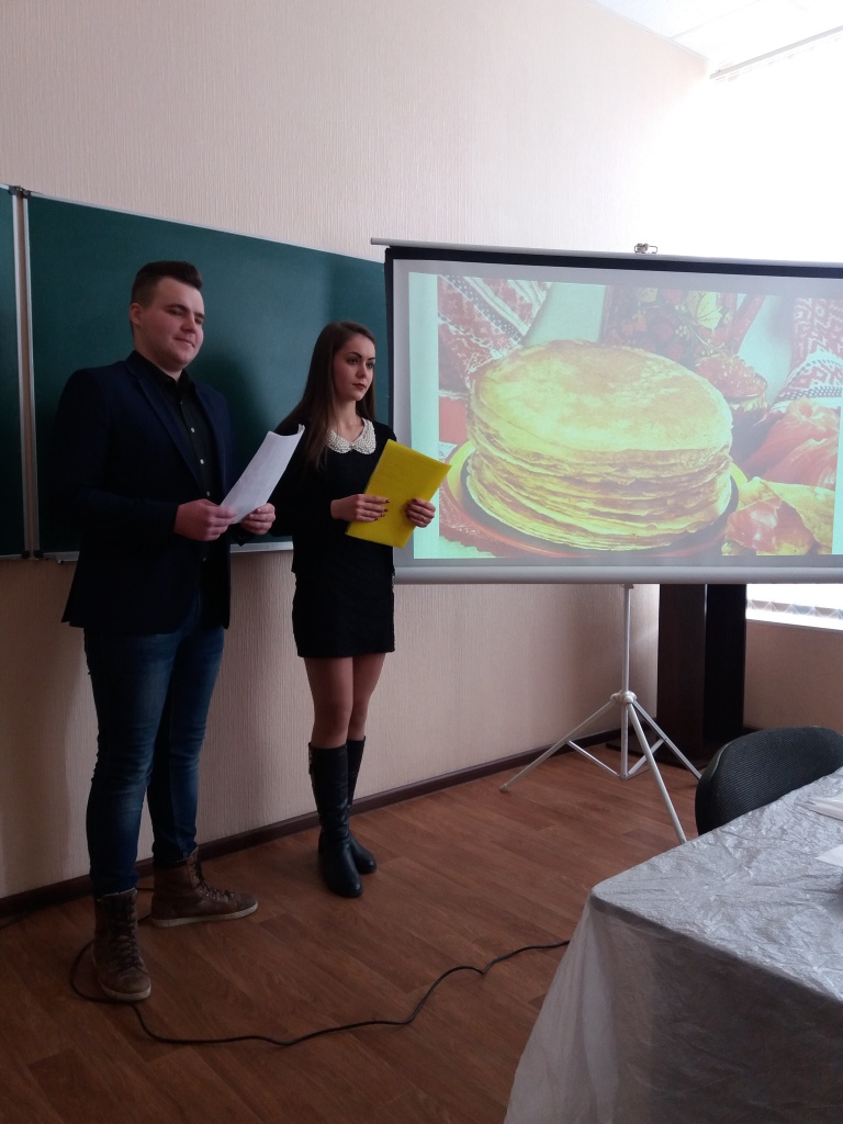Поскольку мероприятие организовывалось будущими переводчиками, то и проходило на двух языках – английском и украинском. Ведущие праздника – Диана Гаркушка, Анастасия Мартыненко, Станислав Щеблыкин и Андрей Службин – рассказали об истории празднования Масленицы и традициях, свойственных каждому дня Масленичной недели. Каждый студент внес свою лепту в организацию праздника. Кто-то пел, кто-то рассказывал стихи и развлекал конкурсами.
