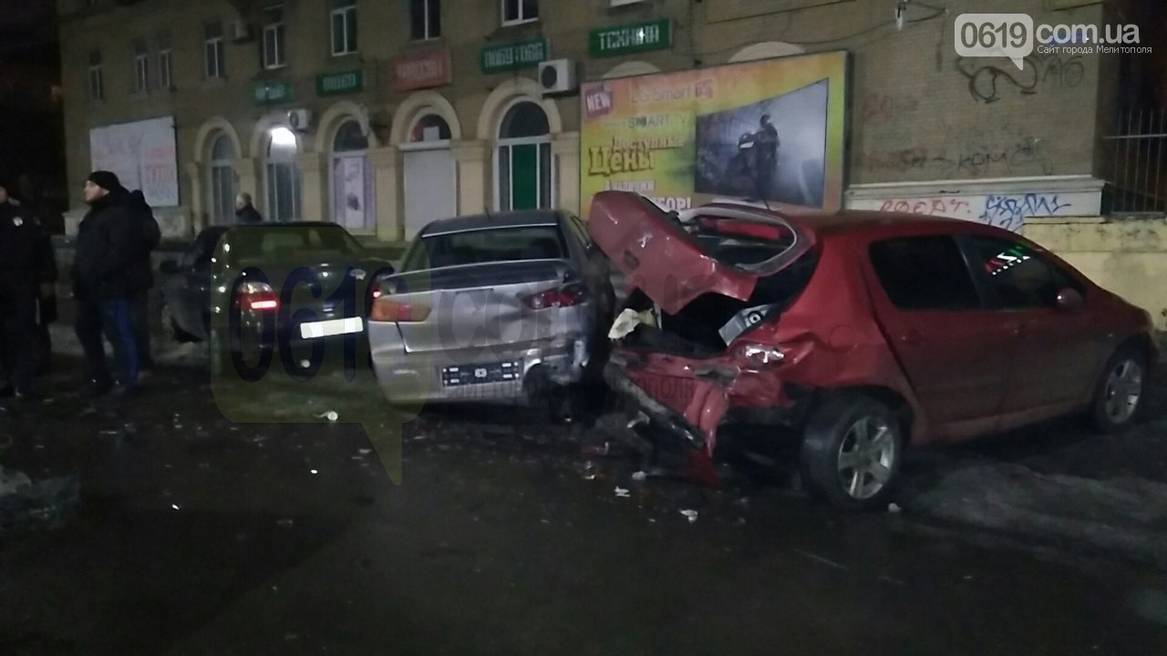 По словам очевидцев, водитель автомобиля ВАЗ 2112 на высокой скорости проехал на два запрещающих сигнала светофора, не справился с управлением и буквально влетел в припаркованные автомобили Peugeot и Mitsubishi Lancer. От удара фара у ВАЗа отлетела к зданию водоканала. Иномарки получили значительные механические повреждения.