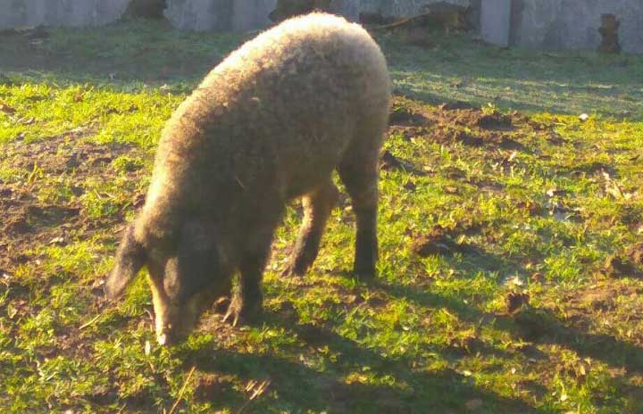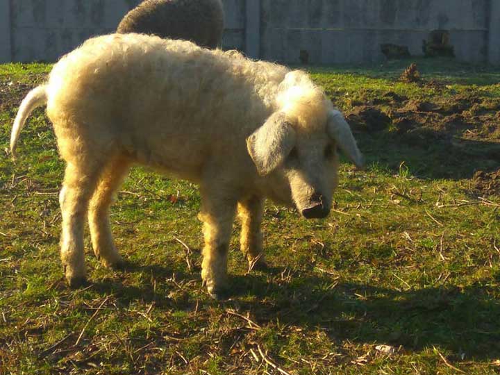 Научное название породы – венгерская мангалица. Благодаря своей шерстке свиньи легко переносят зимние морозы, а летом спасаются от насекомых. В содержании хрюшки этой породы не привередливы, а их поголовье в мире не многочисленно.