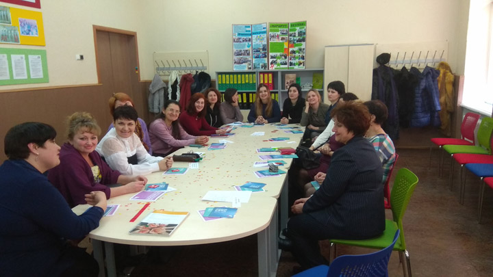 Руководители тренингового кабинета Анна Науменко и Татьяна Донец рассказали о внедрении проектов «Маршрут безопасности» для учеников 8-11 классов и «ВИЧ/СПИД на рабочем месте» для учителей, родителей, технических сотрудников и предложили тренинговые занятия на базе их гимназии старшеклассникам и учителям других школ.
