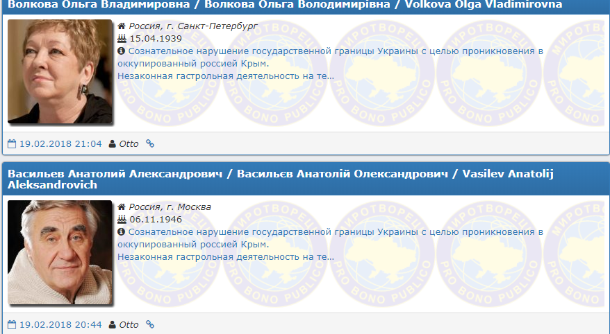 Как сообщается на сайте, указанные лица сознательно нарушили государственную границу Украины с целью проникновения в оккупированный Россией Крым".