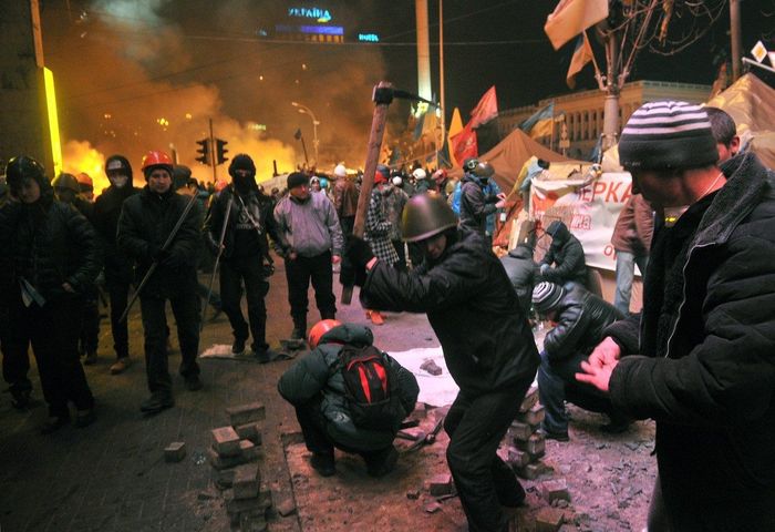 Украинские патриоты несмотря ни на что смогли удержать центр Киева от беркутовского разгона.