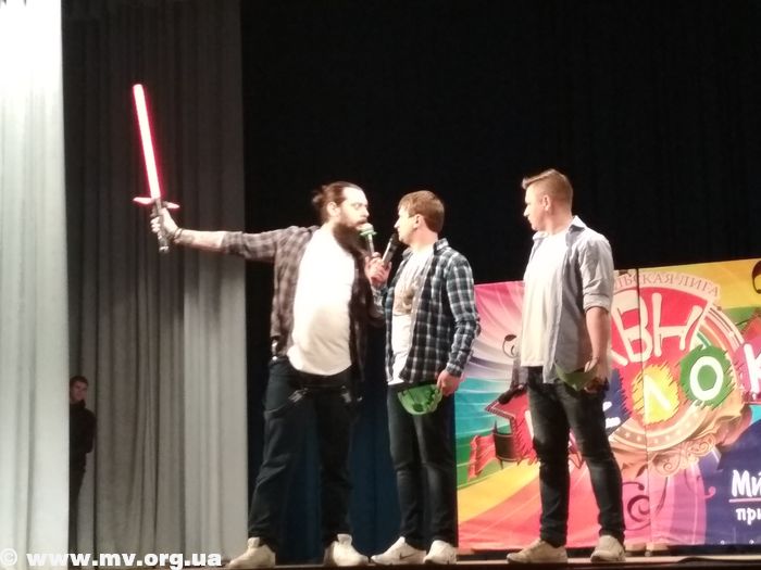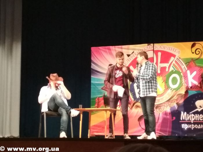 Шутили о разном. Ребята из «Солянки» нафантазировали аэропорт в Мелитополе, а участники команды «Веселый Кабанчик» разыграли КВН в КВН. Судил «невероятное» выступление единственной команды Николай Несват, а на сцене было сразу два ведущих: Владимир Франтишков и Виктор Криворотько. Последний кстати, вниманием участников команд на протяжении игры обделен не был, причем не только девушек (уж очень неровно к нему дышит парень из команды «Александр Павленко»): и на ручках у молодой и красивой посидел, и в Европу поехать приглашение получил.