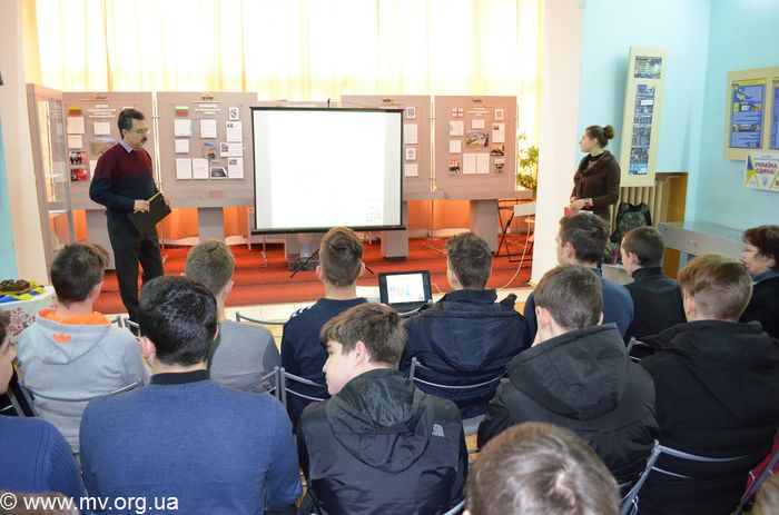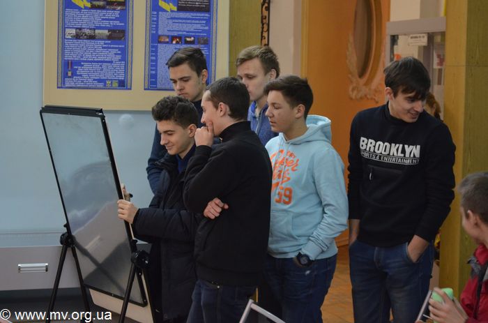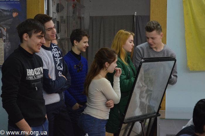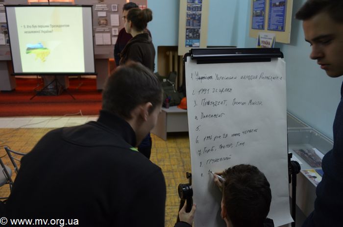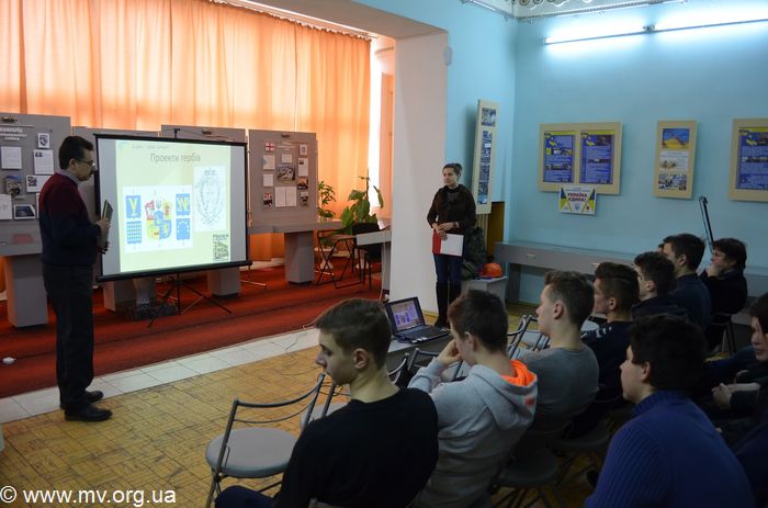 Собравшиеся посмотрели видеофильм о государственных символах Украины, а затем ведущие провели со студентами брейн-ринг на знание символики Украины и истории ее государственности.