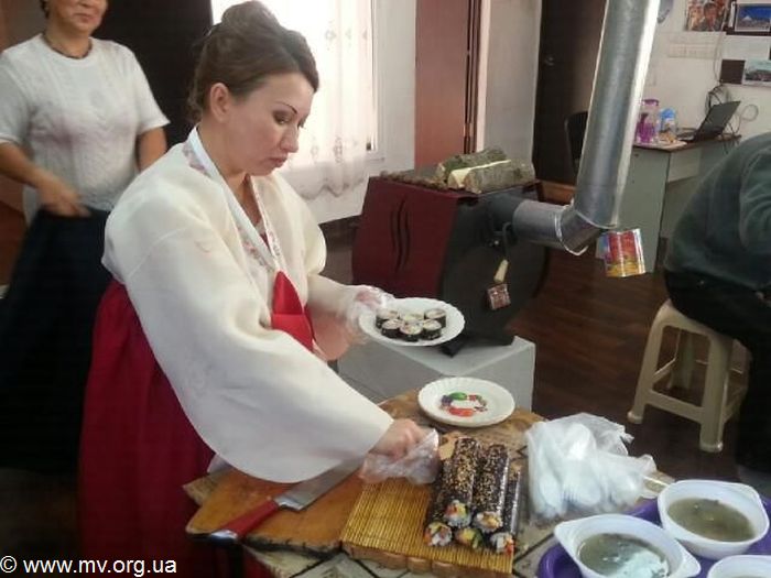 - В праздник дети просыпаются пораньше и бегут выражать свое почтение старшим, - говорит Е. Лим. - Дети трижды кланяются в пол и просят благословения. А мама с папой им за это дают деньги. Обычно это около десяти долларов, если родители состоятельные - дают больше. Дети могут отложить эти деньги в копилку или сразу потратить. Этот обычай похож на украинскую традицию посевать. Если едут всей семьей в гости к дядям, тетям, то дети и там кланяются в пол и тоже получают за это денежные подарки. В нашем центре мы обучали, чем отличаются поклоны мальчиков и девочек.