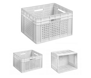 - перфорированные, не цельной структуры. Такие контейнеры имеют в стенках и днище отверстия различной формы и количества. Постоянная циркуляция воздух в такой таре, не допускает возникновения процессов гниения, брожения и окисления перевозимых грузов. Подходят для хранения и транспортировки замороженной продукции (мясной, рыбной, полуфабрикатов), овощей и фруктов. По своим гигиеническим показателям в таком типе тары удобно хранить и перевозить хлебобулочную продукцию;