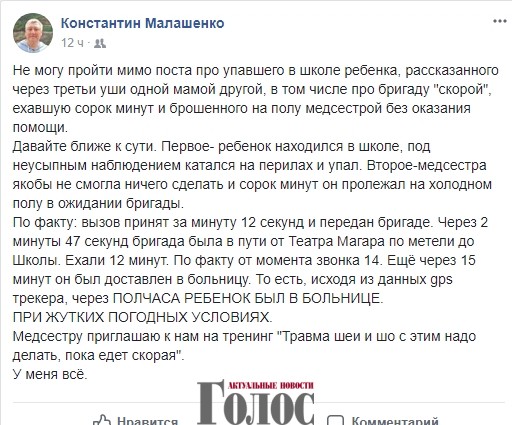 Главный врач Областного центра скорой медицинской помощи и медицины катастроф Константин Малашенко рассказал свою версию произошедшего.