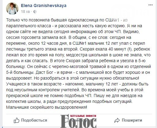 Как мы сообщали ранее, 28 февраля в школе №1 на перемене мальчик 12 лет упал с лестницы. Мальчику вызвали скорую, которая добиралась к школе около 40 минут.