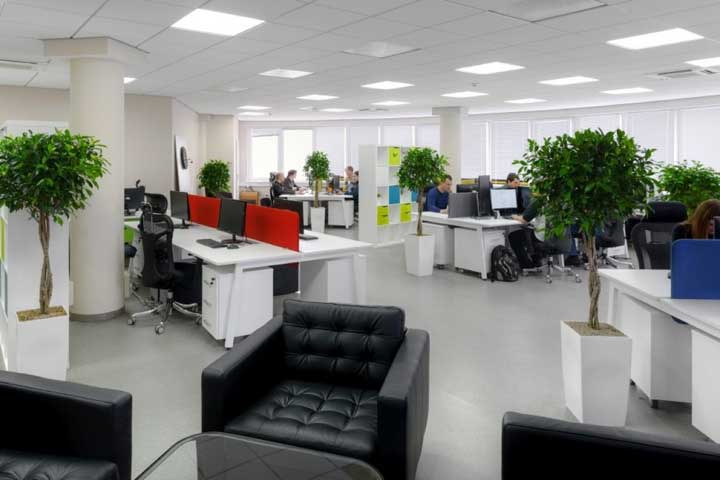 Если раньше на работе хватало нескольких горшочков с цветами, то сейчас дизайнеры предлагают максимум зелени в обстановке. Новые проекты часто включают в себя: