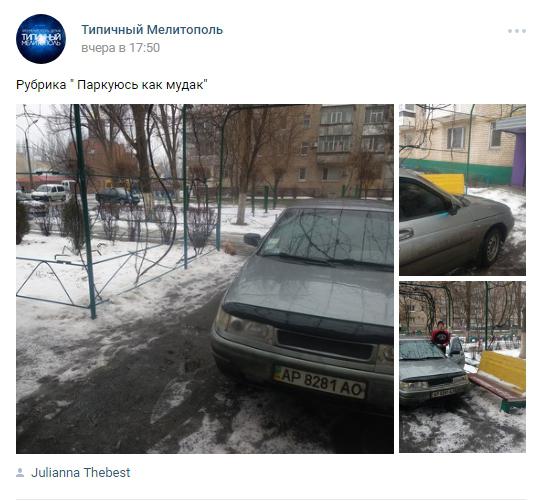 В одном из мелитопольских пабликов появились очередные фото нарушения правил парковки.