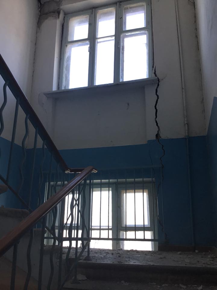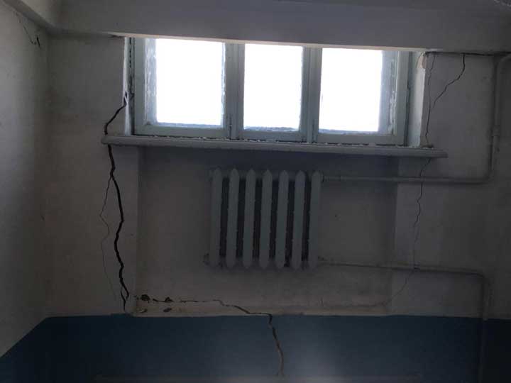 Речь идет о пятиэтажном доме на Бульваре Шевченко, 42. По дому пошли большие трещины, разрушилась даже плитка возле дома. Предварительная причина - прорыв трубы, из-за которой просел дом.
