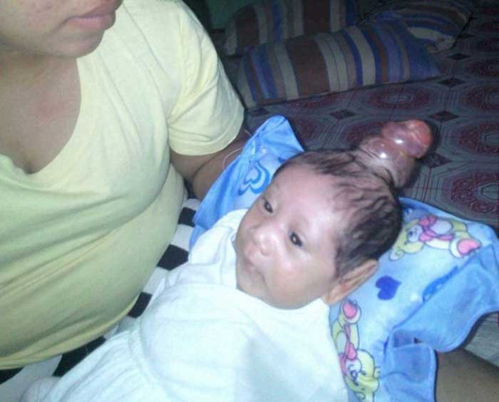 Энцефалоцеле – патология, которая сопровождается выходом мозговых оболочек за пределы черепной коробки. В этом случае аномалия не повредила мозг ребенка, поэтому операция может избавить семью от такой беды. Только вот денег на это у семьи нет.