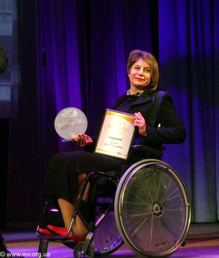 - Инну Тулину - председателя комитета доступности и информационно-проектного комитета Мелитопольского городского общества людей с инвалидностью, победившую в номинации "Преодоление";