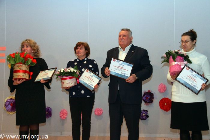 На торжественном собрании, подводя итог ранее проведенной работе, представитель компании "Фундамент" Евгений Турский под аплодисменты зрительного зала вручил благодарности директору ММЦ ПТО Вячеславу Еременко, благодарности и элегантные корзины цветов (ведь встреча проходила накануне Международного женского дня) и.о. заместителя директора по учебно-воспитательной работе Людмиле Джерелейко, методисту центра Алесе Дороховой и мастеру производственного обучения Наталье Нистратовой. А активные учащиеся Павел Лагода, Диана Иванишина, Мария Лектер, Артур Дубинин, Даниил Борисенко и Иван Радченко получили от "Фундамента" грамоты и приятные памятные подарки.
