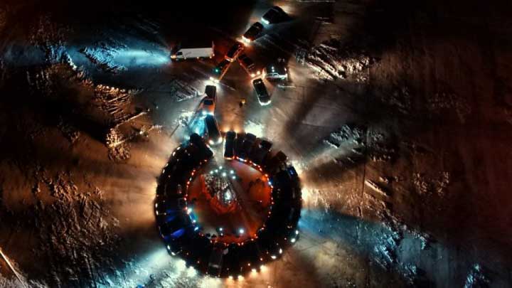 А вот в канун Международного женского дня автомобилисты одного из курортных городов Запорожской области выстроились в виде огромного светящегося цветка.
