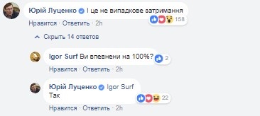 Позже информацию о задержании подтвердил генпрокурор Юрий Луценко в комментарии к посту волонтера Мирослава Гая относительно Рубана в Facebook.